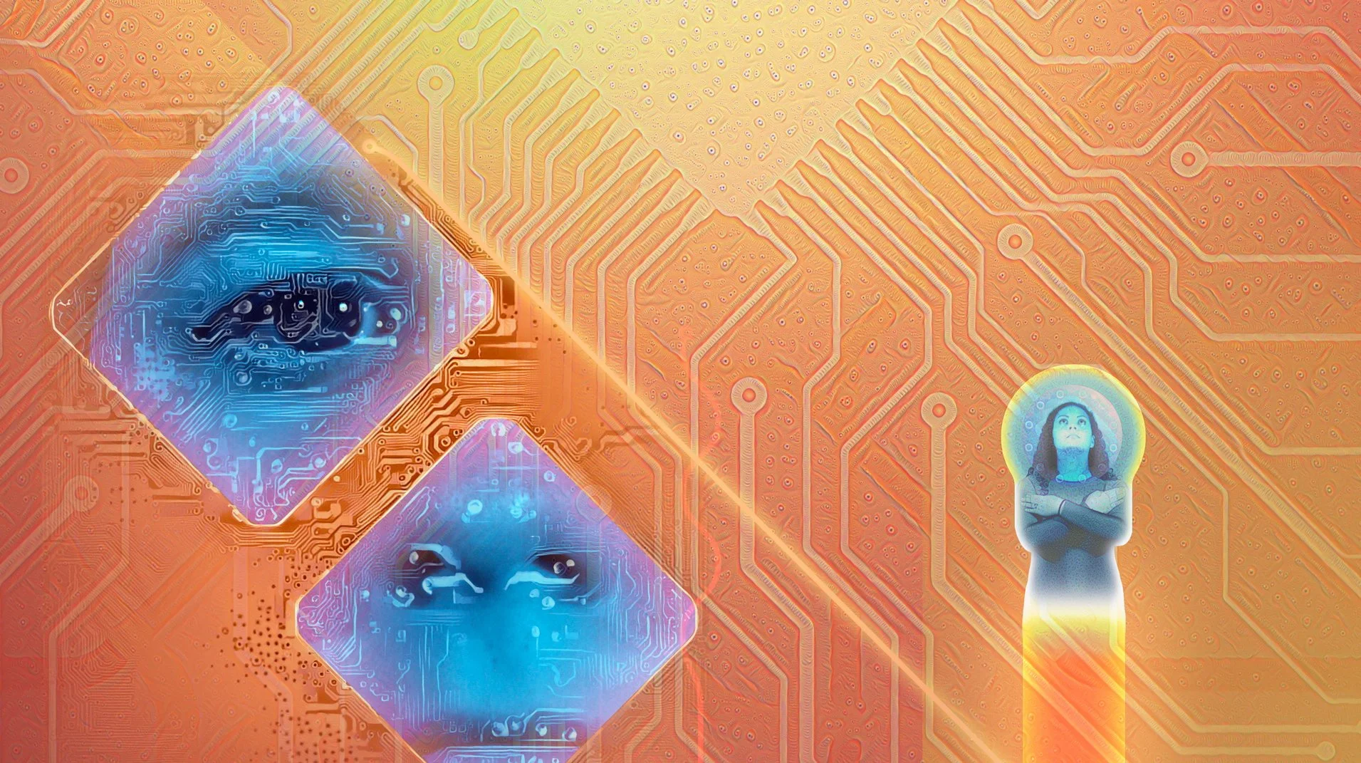 This animation, “Revelation to the Disembodied,” depicts a highly speculative future, one in which fragments of a collective post-human dream construct a world that straddles hyper-technological, ecological, and mythological dimensions. On its surface, the animation plays with the transhuman concept of uploading one’s consciousness to an online environment. But this idea of mind-uploading is only useful as a metaphor.